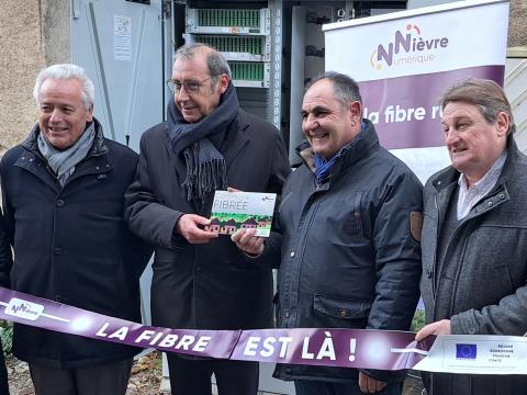 A l’occasion de cette nouvelle ouverture commerciale, M. Fabien Bazin, président du Conseil départemental de la Nièvre et de Nièvre Numérique, M. Jean-Louis Fity, maire de Poiseux, M. Jean-Pierre Chateau, Vice-Président de la Communauté de Communes Les Bertranges et M. Thierry Guyot, Conseiller départemental du canton de La Charité-sur-Loire se sont retrouvés le mercredi 18 janvier 2023 pour inaugurer l’armoire optique de Poiseux. M. Fabien Bazin a clôturé l’événement par la remise de plaque officielle « Commune Fibrée » au maire de Poiseux.