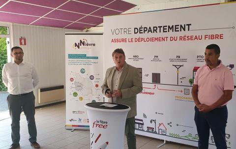 Le 6 juillet, à Pougny, Free a annoncé officiellement son arrivée sur le réseau d'initiative publique de la Nièvre en présence de M. Thierry Godard, Délégué Régional Fibre de Free et de M. Laurent Blain, Directeur Général de BFC Fibre.